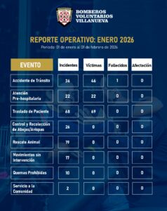 Más de 240 emergencias fueron atendidas por Bomberos Voluntarios de Villanueva en enero