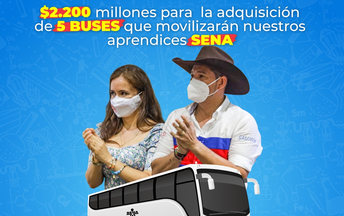 El gobernador de Casanare, Salomón Sanabria, en su compromiso por apoyar el proceso formativo de los jóvenes aprendices del Servicio Nacional de Aprendizaje-SENA- del departamento, destinó una inversión de $2.200 millones para la adquisición de cinco buses que entrarán en operación en aras de garantizar la movilidad de los estudiantes en formación técnica y tecnológica, provenientes de la zona norte, de los municipios de Hato Corozal, Paz de Ariporo, Pore, Trinidad y San Luis de Palenque, tanto del área urbana como rural.