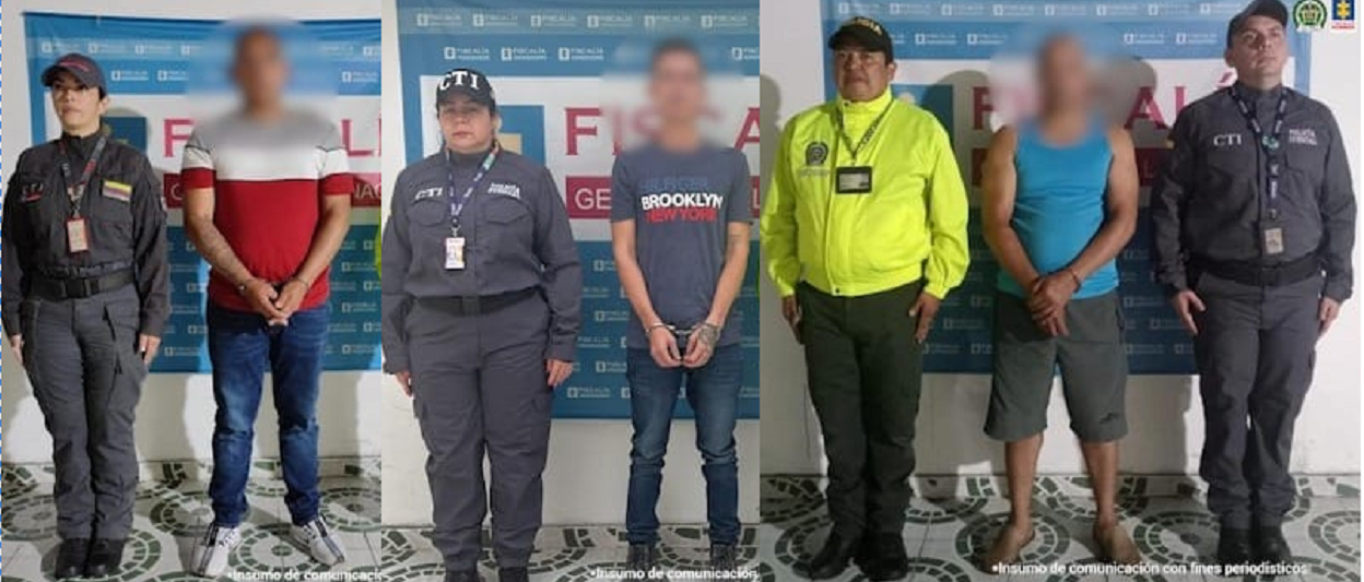 Los procesados, que no aceptaron cargos, fueron capturados por investigadores del CTI de la Fiscalía con el apoyo de la Policía Nacional.