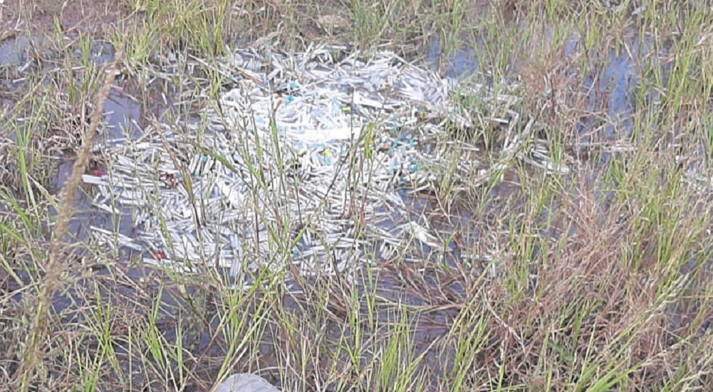 La denuncia fue colocada por ciudadanos del sector, quienes advierten que las jeringas y las agujas pertenecen a residuos patogénicos o infecciosos, debido a que presuntamente ya fueron utilizadas.