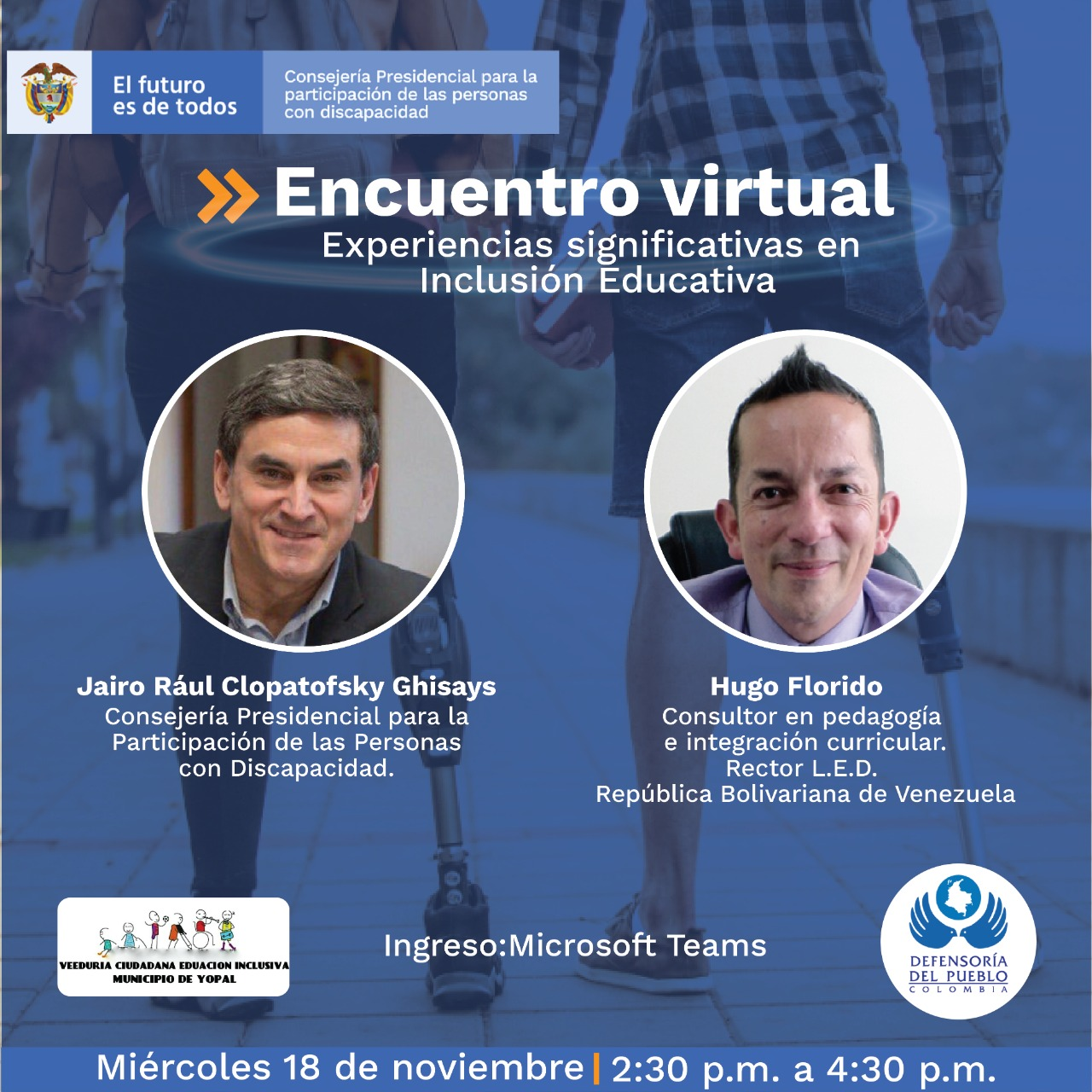 También acompañara el conversatorio Jairo Rául Clopatofsky Ghisays, Consejero Presidencial para la población con discapacidad. El ingreso al evento será por la plataforma Microsoft Teams.
