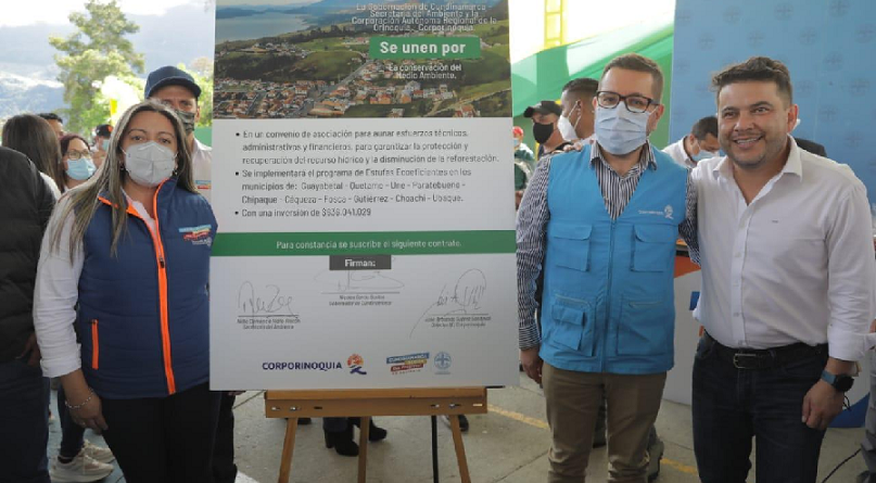 El gobernador de Cundinamarca, Nicolás García Bustos, y el director (e) de Corporinoquia, José Armando Suárez, socializaron en el municipio de Gutiérrez, la firma de un convenio que entregará 20 estufas ecoeficientes a cada uno de los 10 municipios del oriente de Cundinamarca, que hacen parte de la jurisdicción de la Corporación.