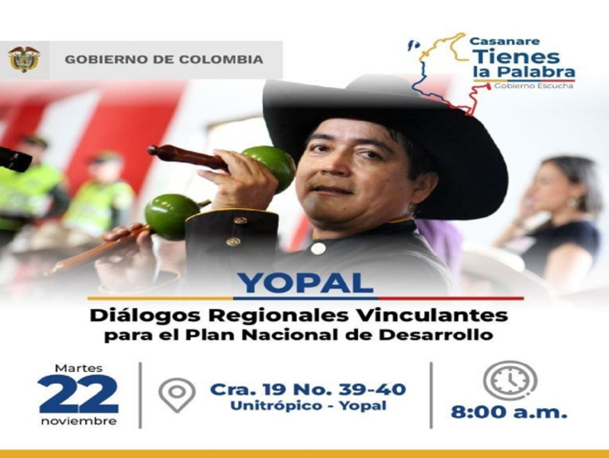 El Ministerio de Agricultura y Desarrollo Rural y el Departamento Nacional de Planeación invitan a la población casanareña a que se inscriban al Diálogo Regional Vinculante del próximo martes 22 de noviembre para que aporten con sus ideas en la construcción del Plan Nacional de Desarrollo del gobierno del presidente Gustavo Petro.