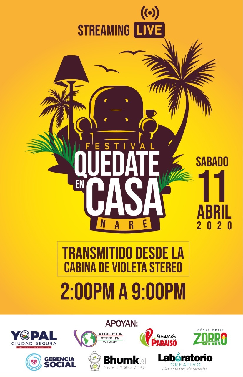 Además nuestra responsabilidad de seguir informando a Casanare, también tenemos una responsabilidad social, por eso nos sumamos al festival “Quédate en CASAnare”. El primer STREAMING LIVE de Artistas Nacionales y Locales unidos por una buena causa. El festival se desarrollara a través de una transmisión online, vía streaming, desde la cabina de Violeta Stéreo 89.7 FM con el objetivo es recaudar ayudas alimenticias para las familias más necesitadas ante la cuarentena y el aislamiento social obligatorio.