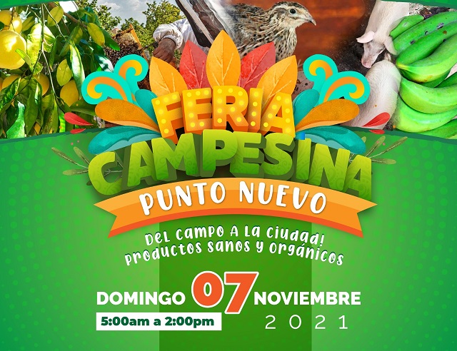 Este domingo 07 noviembre, Punto Nuevo será el escenario del «Mercado Campesino, del Campo a la Ciudad, Productos Sanos y Orgánicos”, desde las 05:00 a.m.