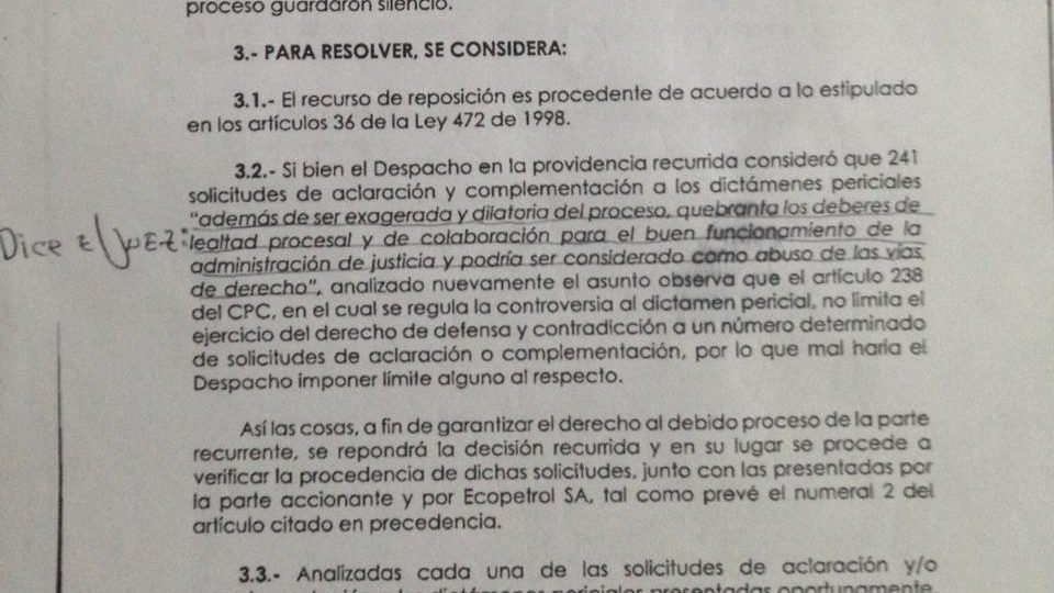 El Juzgado Administrativo de Yopal, emitió providencia respondiendo el recurso de reposición interpuesto por Equion Energía Limited, Santiago Oil Company, Netherlands BV y SPEP Energy, sobre el peritaje contable realizado por la Universidad Nacional, en el proceso de la Acción Popular que busca la reliquidación en las regalías petroleras a Casanare.