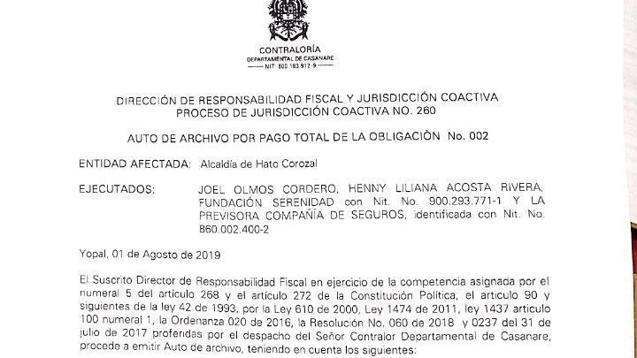 Según Olmos, falta cruzar información entre Procuraduría y Contraloría Departamental, para que se solucione el tema de la inhabilidad. El candidato de la ASI, expresó que tuvo que pagar una sanción por 52 millones de pesos impuesta por la Contraloría, por lo cual ya saneó esta situación y que ahora espera que se actualice el boletín de la Procuraduría.