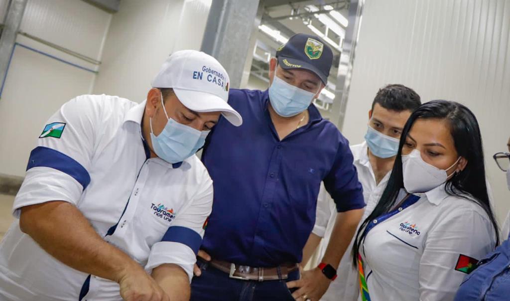 El gobernador de Casanare Salomón Sanabria acompañado de Oscar Eduardo García Secretario de Infraestructura, el alcalde Tele...
