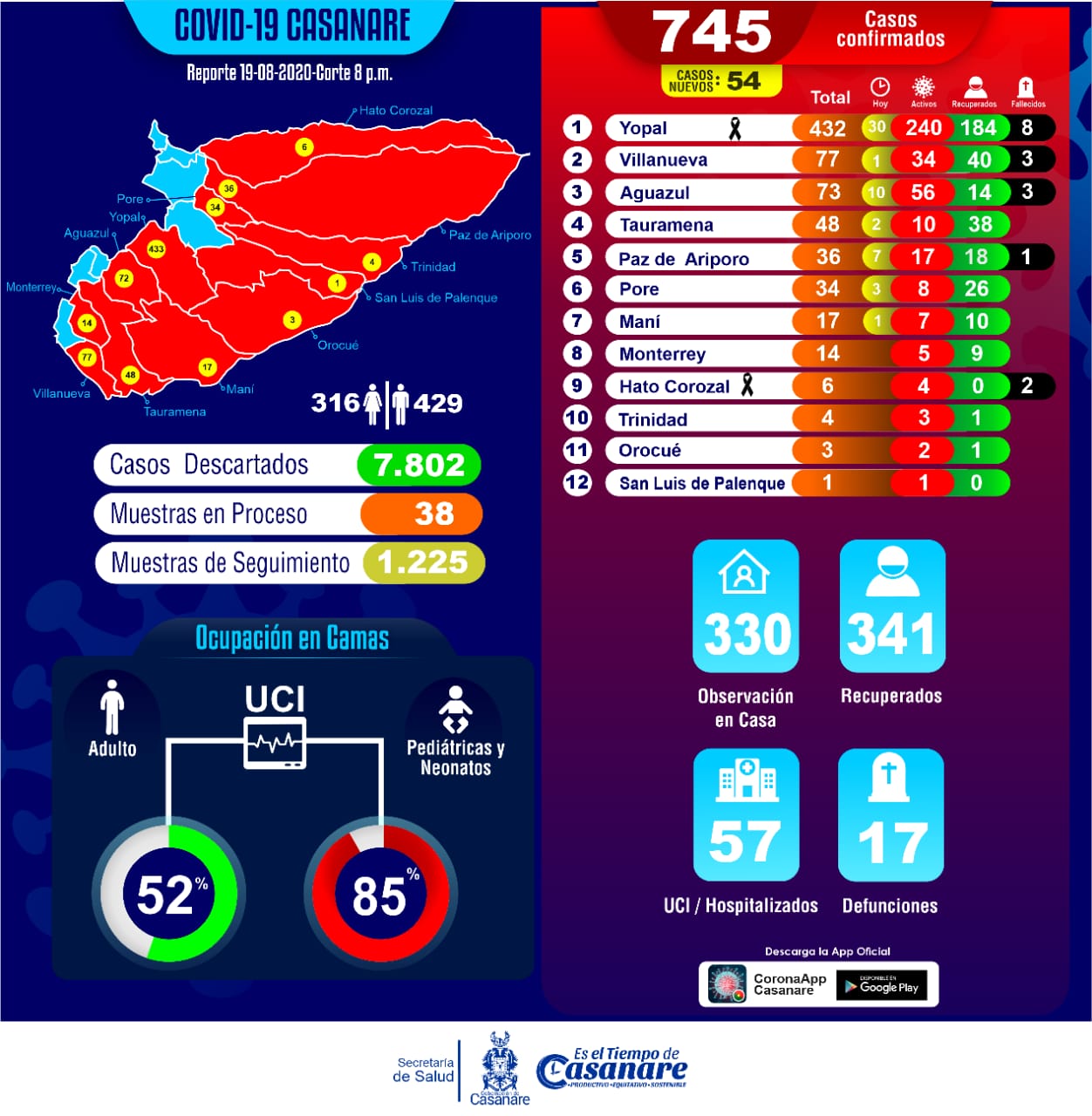 Casanare registra 54 nuevos casos de Covid-19 y la muerte de dos (2) personas con diagnóstico positivo...