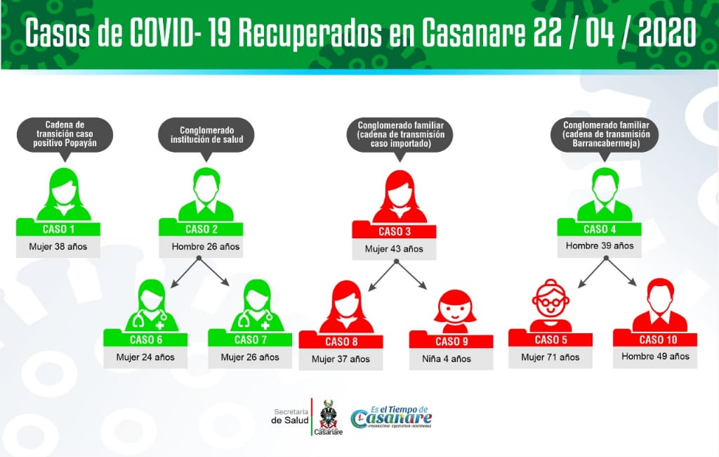 De los diez casos diagnosticados positivos de coronavirus en el departamento, según la Secretaría de Salud Departamental,...