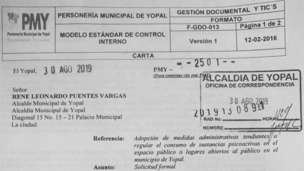 Personería, exhorta alcalde de Yopal, para que controle el flagelo de consumo de alucinógenos