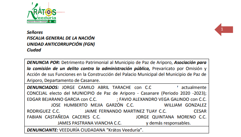 La denuncia es por detrimento patrimonial al municipio, asociación para la comisión de un delito contra la...