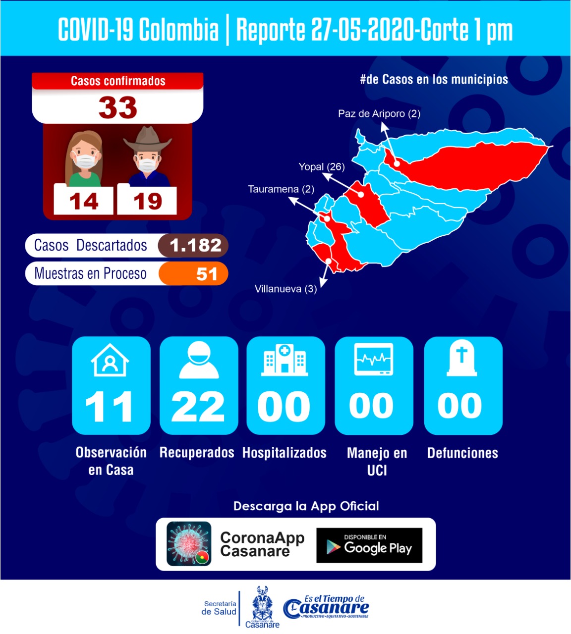 A la fecha ya son 33 los casos confirmados del Coronavirus en 4 de los 19 municipios...