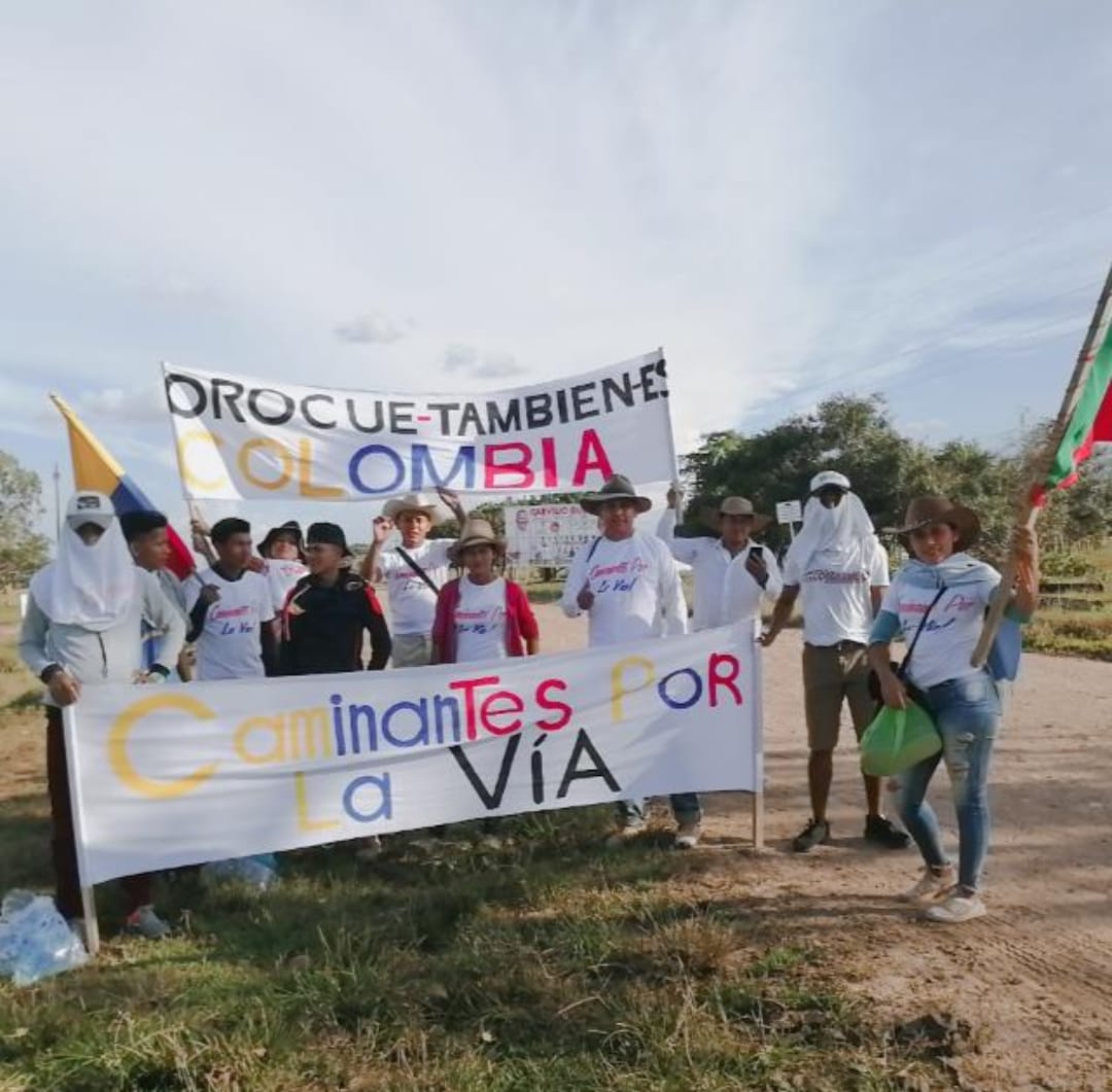 Un grupo de orocueseños van a pie desde Orocué hasta Bogotá, como protesta pacífica por el estado...