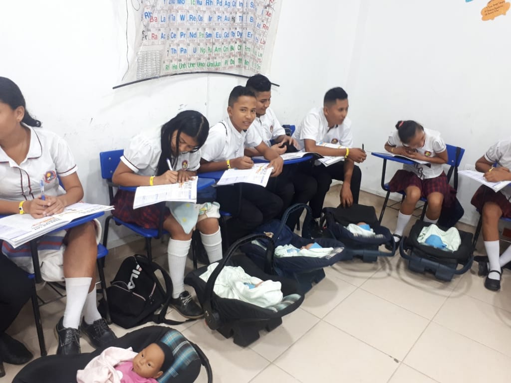 Los simuladores de bebé son entregados a los estudiantes de octavo a décimo grado durante una semana, con el fin que conozcan las implicaciones de responsabilidad que demanda tener un bebé a temprana edad. Situación que no permite que continúen con sus estudios, lo que eleva las cifras de deserción escolar.