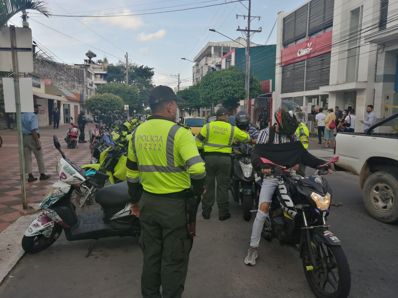 En las imágenes se aprecia que los patrullajes los realizan de manera conjunta los integrantes del ESMAD junto a policías de otras áreas, como seguridad bancaria, carreteras y cuadrantes lo que hace más fácil la diseminación del virus en caso de que alguno de los miembros del escudaron sea portador asintomático. Adicional a la falta de pruebas diagnósticas se suma que los miembros de la policía solo cuentan para su protección con un tapabocas, pues la institución no les ha entregado ni caretas, ni guantes.