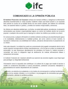 Ante lo que considera una «actuación temeraria», el IFC informó que ha notificado al juzgado competente sobre estas manifestaciones para que se evalúe la conducta del accionante frente a los principios de lealtad procesal y veracidad. Asimismo, el Instituto advirtió que ejercerá las acciones legales pertinentes para proteger su integridad institucional.