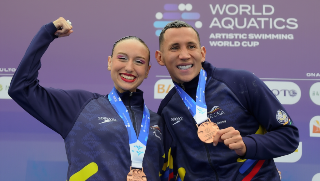 La delegación colombiana de natación artística cerró con éxito su participación en la segunda parada de la Copa Mundo, celebrada en París, Francia. La pareja conformada por Gustavo Sánchez y Emily Minante se consolidó como una de las mejores del planeta al sumar una medalla de plata y una de bronce durante el fin de semana.