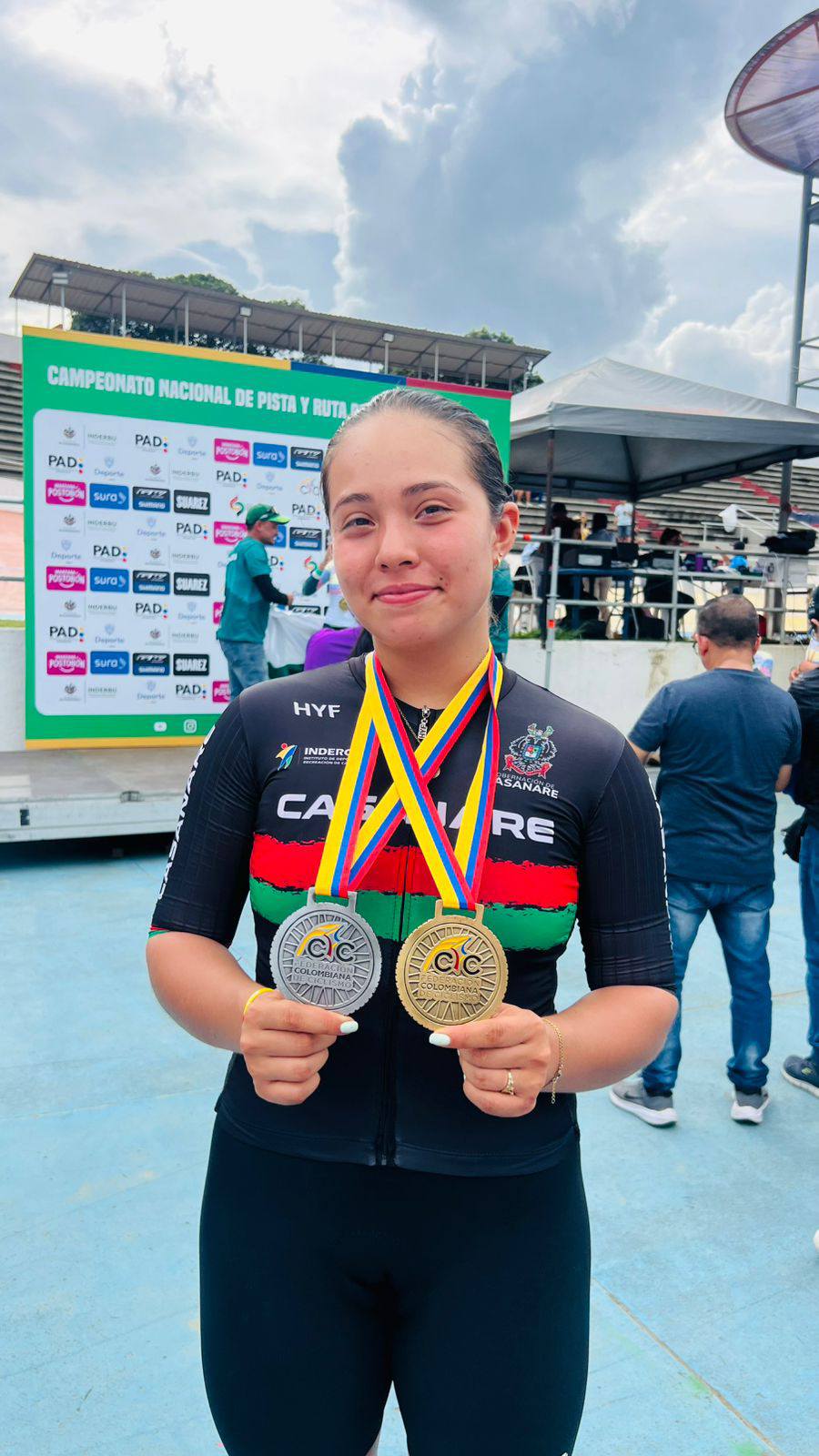 La pedalista casanareña Danna Martínez Mahecha continúa imparable en el Campeonato Nacional de Ciclismo de Pista Juvenil que se disputa en Bucaramanga. Tras haber conquistado la medalla de oro el día de ayer, la deportista sumó hoy una nueva presea a su cuenta personal y a la delegación departamental al obtener la medalla de plata en la prueba de Velocidad.