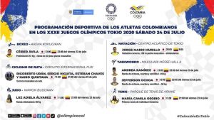 Su rival será el iraní Armin Hadipour (26 años) y Tercero en el Ranking Olímpico Mundial. También a su vez la Deportista & Taekwondista Boyacense ANDREA RAMÍREZ entrará en acción a las 11: 02 Pm en la categoría de los 49 Kg. En las imágenes veremos más disciplinas deportivas que estarán estarán competencia en la jornada de los Juegos Olímpicos TOKIO 2020.