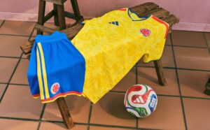 El diseño retoma el amarillo característico de la tricolor como base, al que se suman acentos en rojo y azul inspirados en la bandera nacional. Pero lo más llamativo es un patrón de mariposas amarillas, que atraviesa la camiseta como una textura artística. Este motivo hace alusión al realismo mágico, movimiento literario profundamente ligado al imaginario de Colombia. Según Adidas, las mariposas representan transformación, esperanza y belleza, valores que dialogan con la identidad del país.