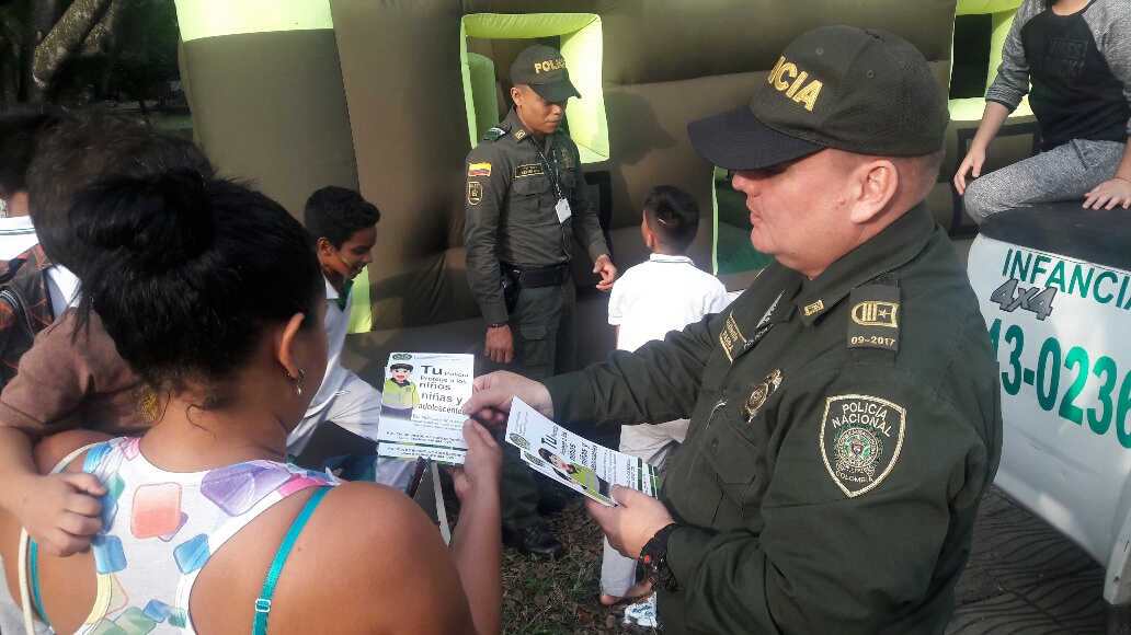 En el desarrollo de esta campaña que comenzó desde el pasado 1 de agosto se socializa la línea gratuita 123 o Policía de Infancia y Adolescencia al teléfono celular número 3208841720 para denunciar cualquier caso de amenaza o violencia contra nuestros niños, niñas y adolescentes.