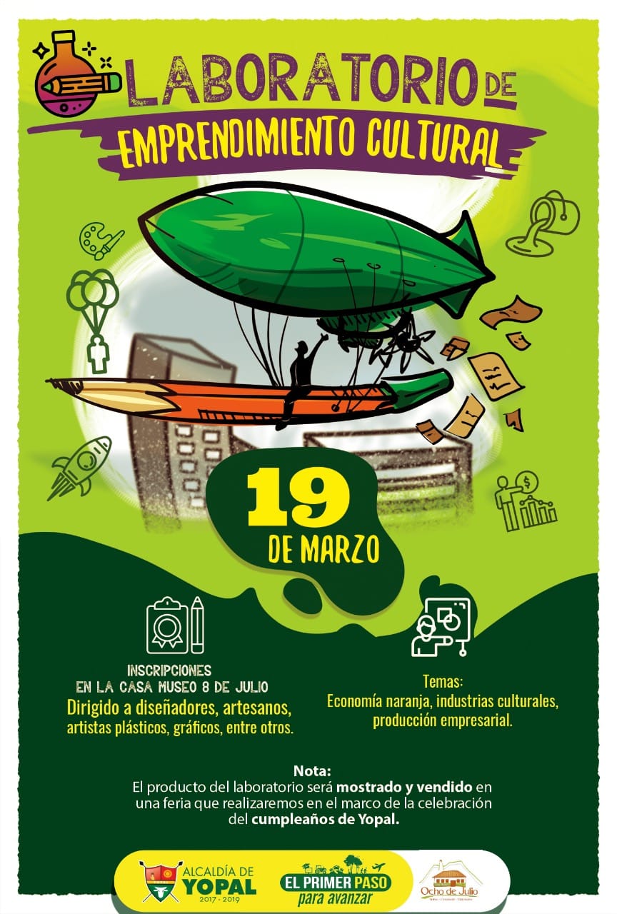 La Dirección de Cultura de Yopal está invitando a diseñadores, artesanos, artistas plásticos, artistas gráficos y comunidad interesada, a hacer parte del “Laboratorio de emprendimiento cultural”.