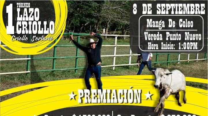 Con el fin de recolectar fondos para terminar la casa comunal y cultural del corregimiento de Punto Nuevo, se realizará este 8 de septiembre de 2019 el 1er Torneo Lazo Criollo en la manga de coleo de ese corregimiento, habrá diferentes actividades y concursos.