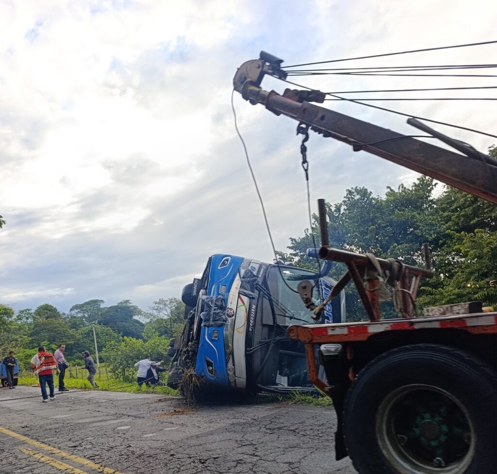 Un bus de la empresa Libertadores se volcó en la noche del sábado entre los municipios de Pore y Paz de Ariporo, cerca del río Muese. El siniestro dejó cinco pasajeros con lesiones leves, mientras que el automotor sufrió daños de consideración.
