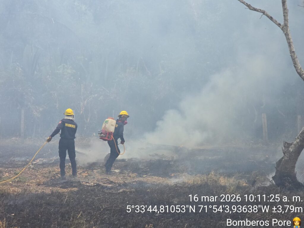 Tras una jornada de más de ocho horas de labores, el Cuerpo de Bomberos de Pore, en colaboración con habitantes de la zona, logró controlar un incendio forestal que se registró en las veredas La Plata y Regalito. La emergencia, que requirió el despliegue de 11 unidades de socorro, dejó un saldo de 28 hectáreas de cultivos de palma afectadas.
