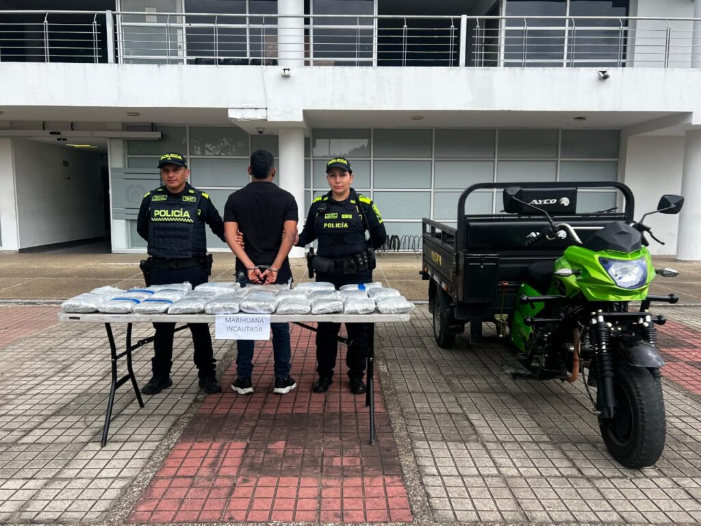 En un operativo de la Policía Nacional en Yopal, fue capturado un ciudadano que presuntamente transportaba marihuana en un motocarro. El procedimiento se realizó en la calle 26 con carrera 29, barrio El Triunfo, luego de que un ciudadano alertara a las autoridades a través de la central de radio.