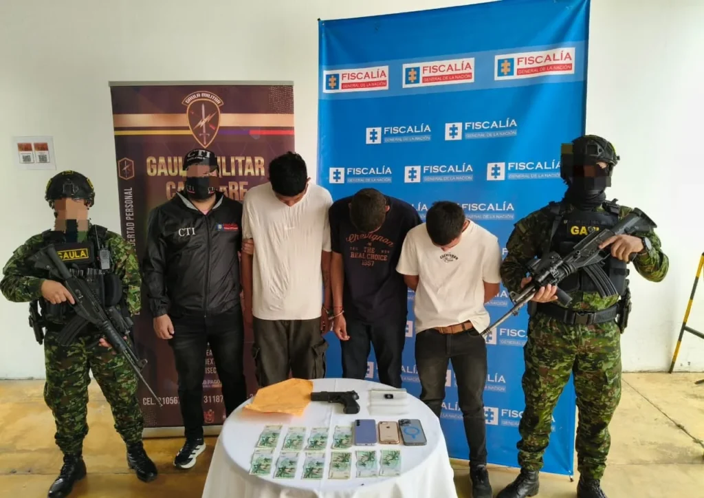 Tres jóvenes de entre 19 y 20 años y un menor de edad fueron capturados en un operativo contra la extorsión adelantado en Yopal, tras una investigación que los señala de intimidar a comerciantes haciéndose pasar por integrantes de un grupo armado ilegal. El procedimiento fue liderado por el Gaula Militar en coordinación con el Cuerpo Técnico de Investigación (CTI) de la Fiscalía.