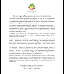 La decisión fue anunciada por la organización Dignidad Agropecuaria Colombiana, mediante un comunicado oficial que señala: