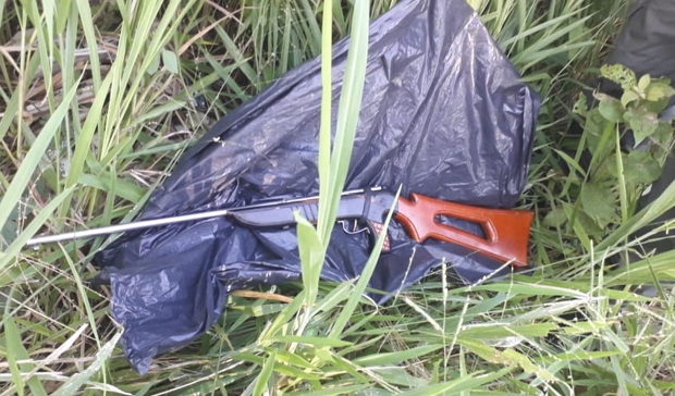 En las últimas horas se reportó que, mediante actividades de patrullaje y control, por la vía que conduce a El Tesoro, aproximadamente a 500 metros del casco urbano, unidades de la Policía observan a dos ciudadanos que vestían ropa oscura. Estas personas se movilizaban en una motocicleta marca Auteco, línea bóxer, color azul sin placa quienes al notar la presencia de la autoridad emprenden la huida arrojando a la zona boscosa, a un costado de la vía, una bolsa plástica de color negro que contiene un arma de fuego tipo escopeta, calibre 22 mm, marca BAND, con número de serie externo C-2304, cachas en maderas color marrón y en regular estado de conservación. El elemento es dejado a disposición de la Fiscalía 9 local de Paz de Ariporo.