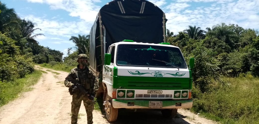Unidades del Grupo montado Guías del Casanare del Ejercito Nacional en la Vereda Centro Gaitán de Paz de Ariporo, vía rural que conduce al municipio de Trinidad, a las 9:48 de la noche del pasado 16 de julio, se observó un vehículo tipo camión marca Mazda placas y IBM 353 color blanco en el cual se transportaban dos personas de sexo masculino los cuales se encontraban estacionados en la carretera. Al realizar un registro al vehículo se observa que en la parte interna de su carrocería en medio de unas canastas color café y negro, 4 bultos los cuales contenían en su interior una sustancia vegetal que por sus características de color y olor se asimilan a la marihuana envueltos en cinta en forma de panela. EL camión transportaba un total de 230 paquetes y un peso total aproximado de 181 kilos.