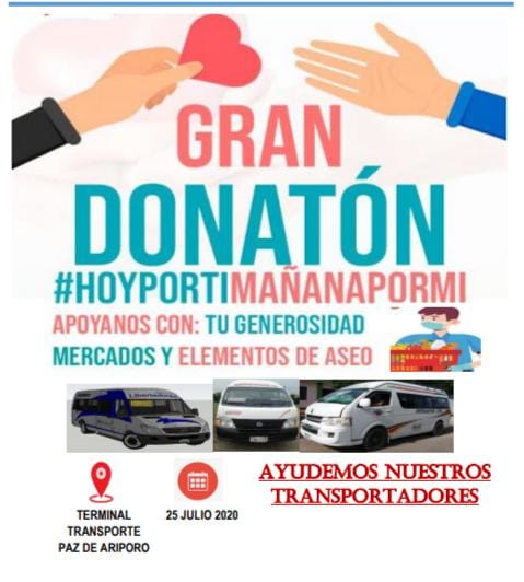 Conductores afirman que ya están llegando al límite de lo que pueden soportar y sus familias necesitan pronto reactivar su economía por el enorme impacto que durante la pandemia ha representado el no poder trabajar. Para mitigar un poco sus necesidades, los conductores decidieron realizar una donatón este sábado 25 de julio desde las 8:00 de la mañana hasta las 4:00 de la tarde, donde pretenden recoger ayuda representada en mercados y elementos de aseo.
