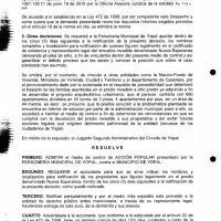 Un nuevo capítulo se abrió con la intervención de la Personería en la que se solicita la declaración de la vulneración a los intereses colectivos del patrimonio púbico y Moralidad administrativa, teniendo en cuenta que la alcaldía municipal no ha cumplido con el desalojo del predio donde se encuentra el asentamiento humano Mi Nueva Esperanza.