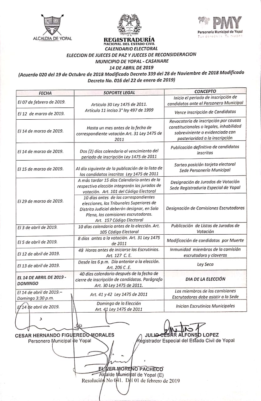 Al fin se definió el cronograma electoral con ocasión a las elecciones de jueces de paz y...